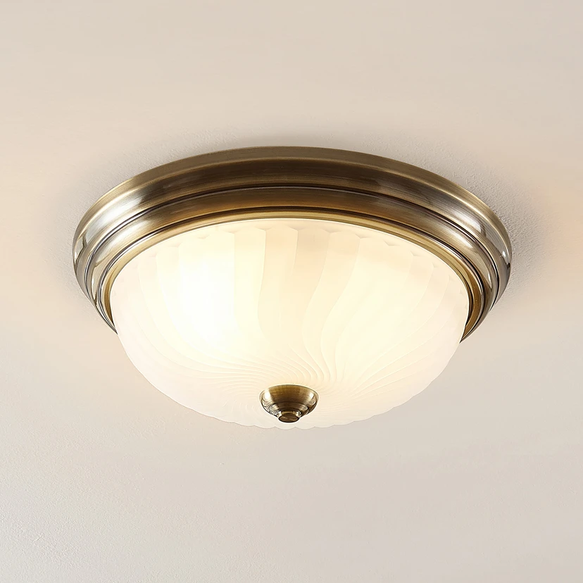 Lampa sufitowa Pakka z metalową obudową o wyglądzie mosiądzu To ciekawe źródło światła wywiera dyskretny, a jednocześnie bardzo szczególny efekt na obserwatorze. Prosty klosz lampy sufitowej Pakka jest wykonany z matowego szkła, które delikatnie i bez oślepiania rozprowadza światło po całym pomieszczeniu. Solidna metalowa rama ma wygląd antycznego mosiądzu, co nadaje lampie Pakka wyjątkowy charakter. W dwóch oprawach E27 można zamontować zarówno zwykłe, jak i ściemniane źródła światła. W połączeniu ze zwykłym ściemniaczem ściennym (ściemnianym na wyłączność), jasność tego pięknego światła można dostosować do własnych potrzeb.