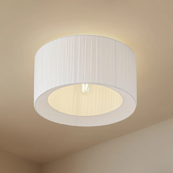 Lampa sufitowa Virelle jest wykonana z wysokiej jakości tkaniny i wytrzymałego żelaza. Biały kolor okrągłego kloszcza z delikatnym wzorem plisowanym zapewnia ponadczasową estetykę, która uzupełnia zarówno klasyczne, jak i nowoczesne style wnętrz i tworzy atrakcyjny efekt świetlny. Materiał przepuszcza światło do pomieszczenia bez oślepiania.