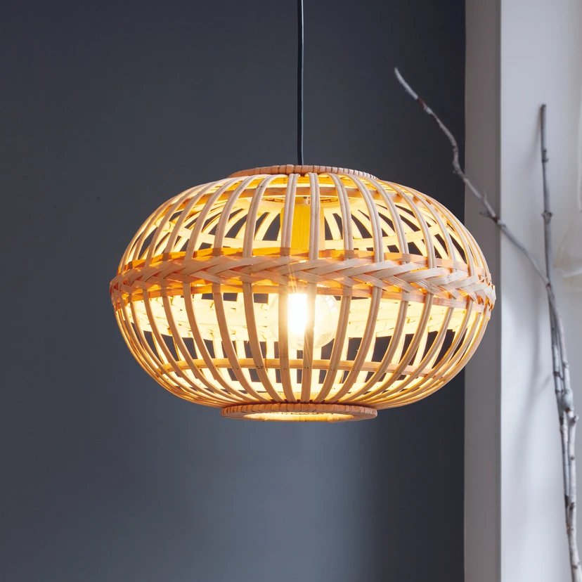 Lampa wisząca Amsfield z bambusa, owalny kształt