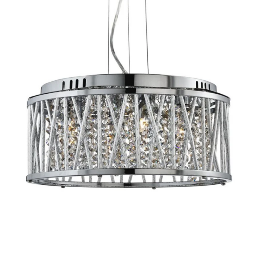 Lampa wisząca Elise ma okrągły klosz z błyszczącymi, chromowanymi, metalowymi rozpórkami na zewnątrz. Wewnątrz znajdują się nie tylko gniazda do małych lamp G9, ale także krople szklanych kryształów, które po włączeniu światła idą bardzo imponująco i tworzą przyjemną atmosferę. Podczas instalacji można również wybrać, czy pożądany jest montaż podwieszany, na przykład do oświetlenia stołu jadalnego, czy też wersja przy suficie, która jako oświetlenie sufitowe, na przykład w salonie, zapewnia dobre oświetlenie pomieszczenia.