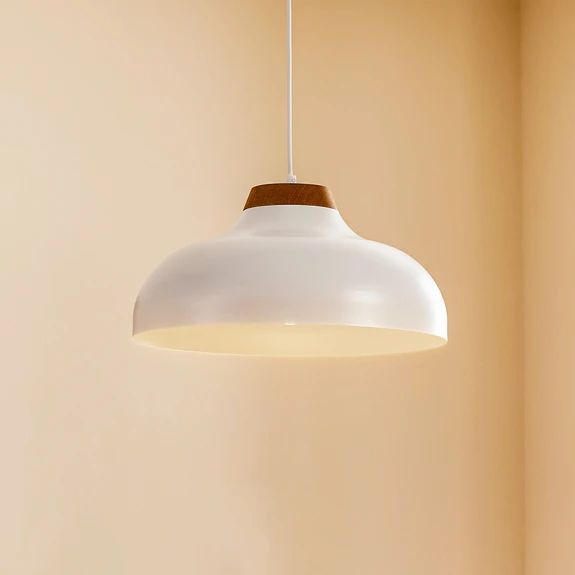 Lampa wisząca Gus z metalowym kloszem w kolorze białym łączy w sobie nowoczesny design z wysokiej jakości materiałami, takimi jak stal szlachetna, drewno i tworzywo sztuczne. Takie połączenie zapewnia stylowe i trwałe rozwiązanie oświetleniowe, które idealnie wpasuje się w różne koncepcje aranżacji wnętrz. Niezależnie od tego, czy zostanie umieszczona w salonie, kuchni czy jadalni, lampa ta podkreśli charakter każdego pomieszczenia i stworzy przyjemną atmosferę.