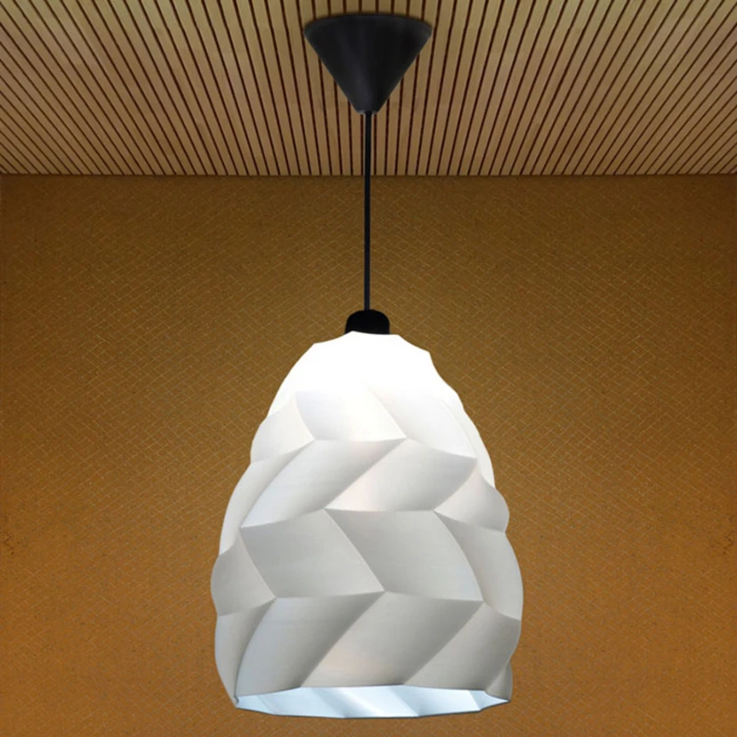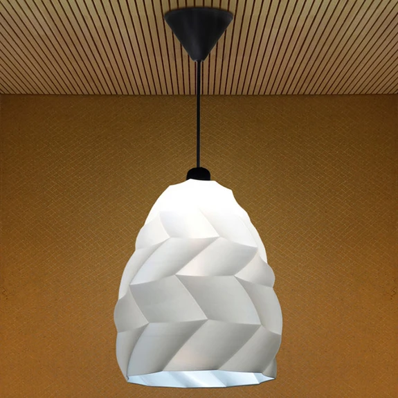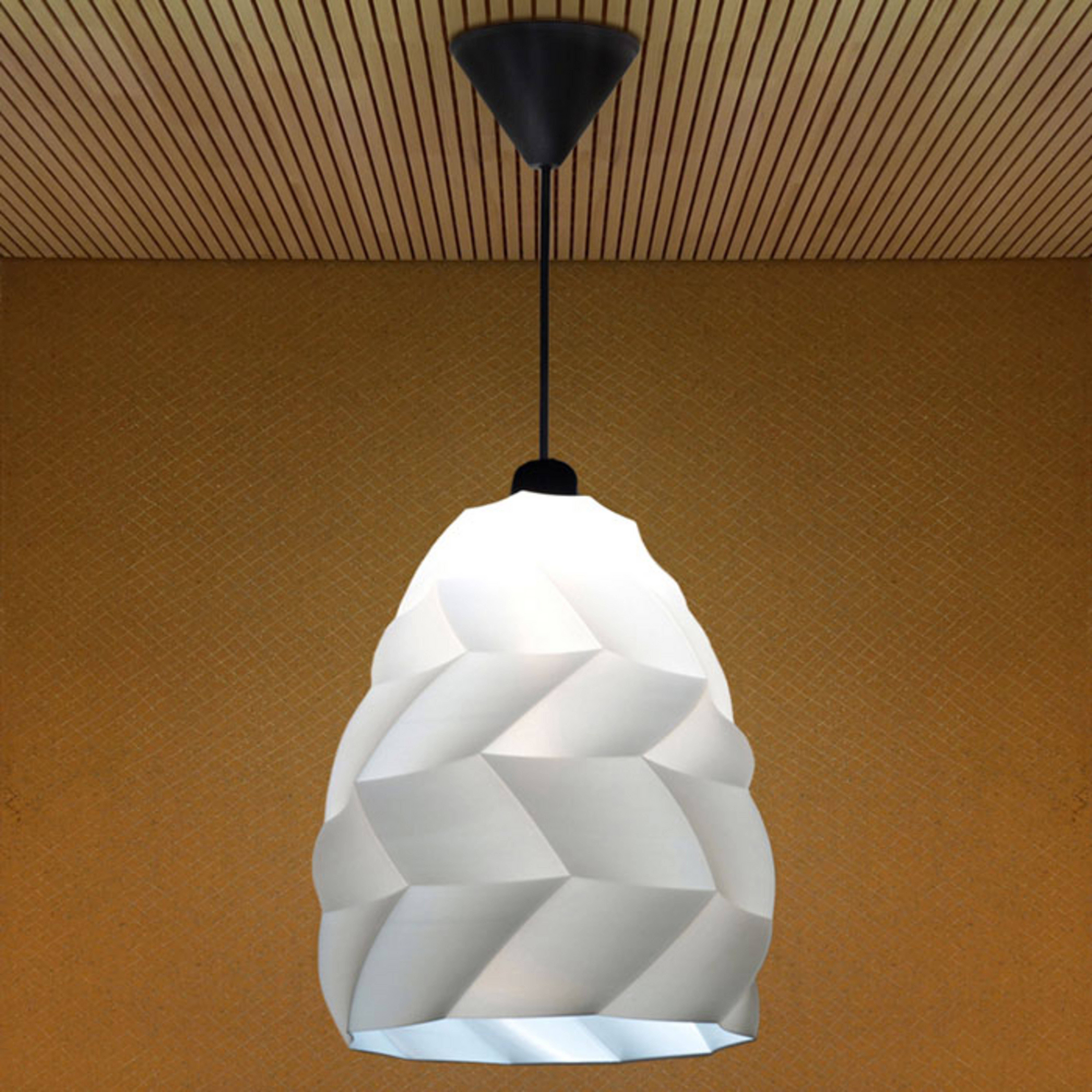 Wyprodukowana w procesie druku 3D lampa wisząca Kokon inspiruje unikalnym i złożonym designem. Rzeczywiście przypomina to trochę wylęganie się motyla z kokonu - stąd nazwa kokon. Materiał drukowany, z którego wykonany jest cały klosz, to w 100% naturalny i wolny od toksyn biomateriał z ligniny (skrobia kukurydziana). Oznacza to, że lampa jest również bardzo daleko do przodu pod względem zrównoważonego rozwoju. Dodatkowo, dzięki innowacyjnemu procesowi druku, który potwierdza filozofię manufaktury Tagwerk, osiągnięto produkcję bezodpadową. Dzięki własnej produkcji (Made in Germany) obiekty designerskie są wytwarzane bez dużych odległości, a co za tym idzie z niskim poziomem emisji.