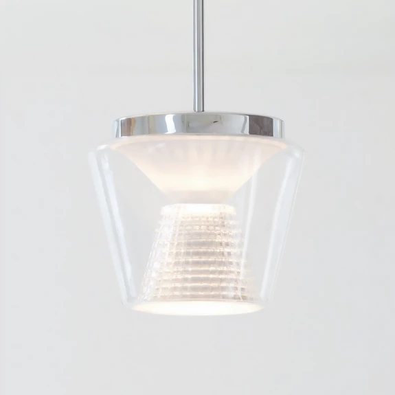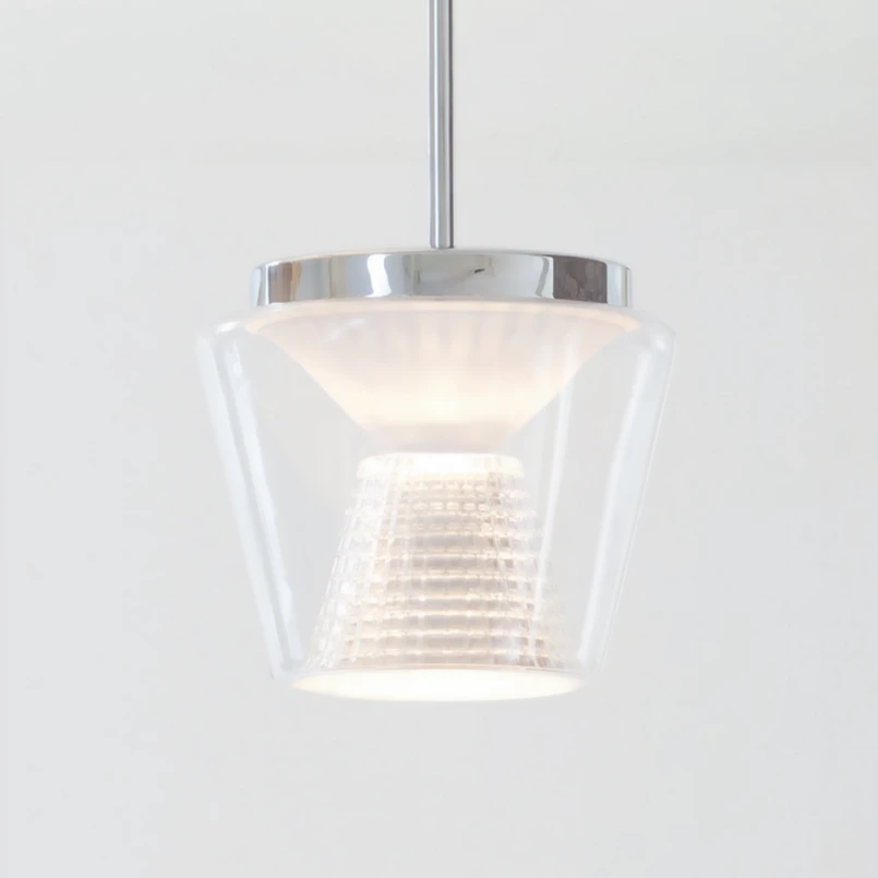 Klosz z dmuchanego szkła z kryształową wstawką: designerska oprawa wisząca LED AnnexDekoracyjne i jednocześnie funkcjonalne światło nie stanowi problemu dla oprawy wiszącej LED Annex autorstwa frankfurckiego projektanta Uwe Fischera. Zewnętrzny klosz wykonany z przezroczystego, dmuchanego szkła tworzy dekoracyjną osłonę dla wewnętrznego klosza, który służy jako reflektor i jest wykonany z ciętego szkła kryształowego. Zapewnia to, że większość światła z diod LED COB jest skierowana w dół, ale część jest również emitowana dookoła jako światło dekoracyjne. Z ciętym szkłem kryształowym jako odbłyśnikiem, można sobie również wyobrazić sposób, w jaki to dekoracyjne światło jest następnie rozprowadzane w otoczeniu, a mianowicie załamywane tysiące razy, a tym samym mieniące się i z dekoracyjnym wzorem na ścianie i suficie. Oprawa wisząca jest również szczególnie przyjazna dla użytkownika i funkcjonalna, ponieważ można ją ściemniać, a mianowicie za pomocą ściemniacza fazowego, który jednak nie jest dołączony do zestawu. Montaż szkła lampy odbywa się za pomocą zamka bagnetowego i dlatego jest bardzo łatwy. Lampa Annex różni się także od wielu innych opraw wiszących tym, że nie jest zawieszona na kablu lub lince, lecz na pręcie. Oprawa wisząca LED Annex to estetyczna i funkcjonalna opcja do oświetlenia ogólnego w korytarzu - czy to w pokojach prywatnych, czy w hotelach - lub jako oświetlenie nad ladą lub barem.