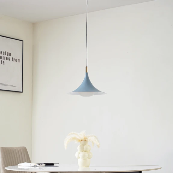 Elegancka lampa wisząca Jarl w kolorze niebieskim do jadalni i salonów Lampa wisząca Jarl jest wykonana z metalu i ma elegancki niebieski kolor. Dzięki nowoczesnemu designowi idealnie wkomponowuje się w estetykę jadalni, salonu lub kuchni i tworzy atmosferę, która zarówno zachęca do odpoczynku, jak i pobudza kreatywność. Chociaż oprawa ta nie jest wyposażona w zintegrowany ściemniacz, można ją łatwo regulować za pomocą zewnętrznego ściemnianego regulatora, aby dostosować nastrój oświetlenia do własnych wymagań. Stwórz stylowy akcent dzięki lampie wiszącej Lindby i ciesz się mocą światła w swoim domu.