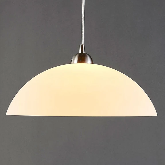 Valeria - szklana lampa wisząca z przytulnym efektem świetlnym Ponieważ klosz lampy wiszącej Valeria jest wykonany ze szkła, emitowane światło jest przyjemnie rozproszone i ma miękki charakter. Tworzy to przytulny i zachęcający efekt, dlatego lampa wisząca świetnie prezentuje się przy stole jadalnym lub nad miejscem do siedzenia w kuchni dzięki swojemu wyglądowi i efektowi świetlnemu. Wybierając źródło światła, można postawić na starą dobrą żarówkę żarową lub halogenową, ale można też wybrać znacznie bardziej energooszczędną żarówkę LED, która jest obecnie dostępna w takiej formie, że wizualnie w niczym nie ustępuje żarówce tradycyjnej.