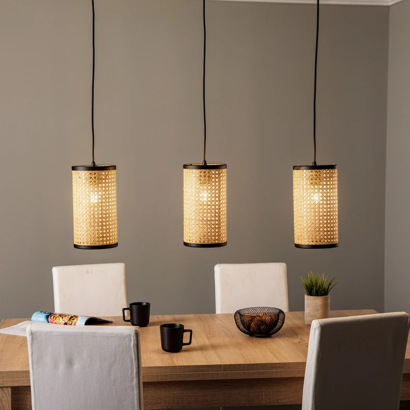 3-punktowa lampa wisząca Yaella o podłużnym designie Zainspiruj się tą lampą. Lampa sufitowa zachwyca ładnym designem, który pięknie dopasowuje się do każdej atmosfery. Światło można ściemniać według własnych upodobań za pomocą zewnętrznego ściemniacza (brak w zestawie). Można ją wyposażyć w źródła światła z podstawą E27. Oprawa w odcieniu drewna zachwyca jakością marki Lindby, a tym samym oznacza wyjątkowe wrażenia z życia i doskonały design. Sprawdzi się w każdym pomieszczeniu i stworzy w nim piękną atmosferę. Rattanowa lampa sufitowa zachwyci i z łatwością wkomponuje się w wiele różnych przestrzeni. Zapewnia nie tylko piękną grę światła, ale także pełni funkcję dekoracyjną.