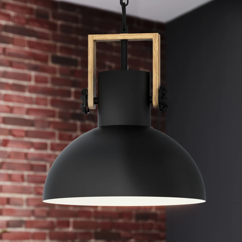 Czarna lampa wisząca Lubenham w stali i drewnie