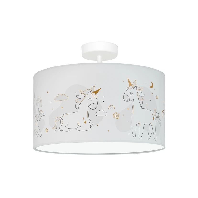 Lampa wisząca Mila, Ø 35 cm, tkanina, jednorożce, E27 Czas dostawy: 4 - 6 tygodni