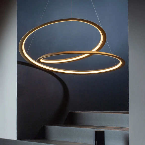 Podobnie jak orbita niebiańskiego ciała okrążającego centralną gwiazdę w nieregularnych pętlach, pojawia się oprawa Kepler LED wisząca japońskiego projektanta Arihiro Miyake. Lampka wisząca wykonana jest z spłaszczonego, skośnie ustawionego profilu aluminiowego. Od spodu zintegrowany jest ciągły pasek ciepłych, białych diod LED. Ten projekt sprawia, że Kepler jest idealnym źródłem światła w nowoczesnych wnętrzach, gdy wymagane jest inspirujące wzornictwo i bezpośrednie oświetlenie.
