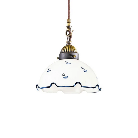Rustykalna lampa wisząca Nonna z ręcznie malowaną, rozproszoną dekoracją kwiatową