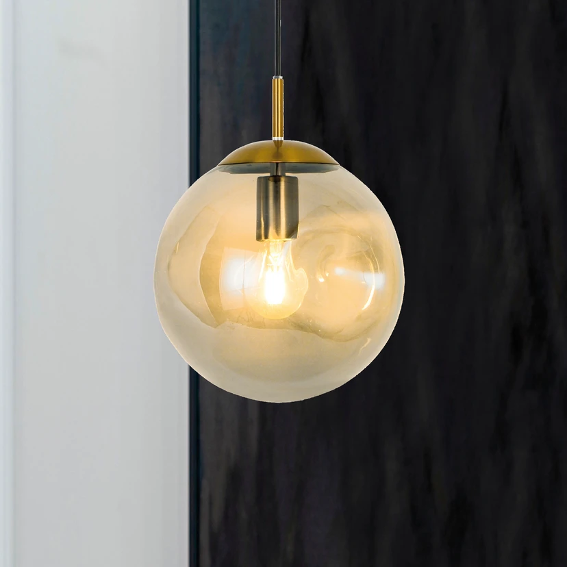 Lampa wisząca Oscar ze szklanym kloszem, bursztyn