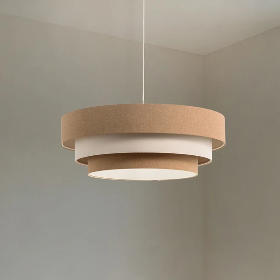Lampa wisząca Triniti: europejska elegancja dla przestrzeni mieszkalnych Doświadcz transformacyjnej mocy światła dzięki lampie wiszącej Triniti, arcydziełu europejskiego rzemiosła. Starannie wykonana w beżowych i kremowych odcieniach, lampa ta wprowadza atmosferę ciepła i stylu do każdego salonu, jadalni lub sypialni. Tekstylny charakter klosza zapewnia miękki, zachęcający rozsył światła, który poprawia nastrój i wspiera każdą aktywność. Chociaż lampa nie jest wyposażona w zintegrowany ściemniacz, można ją łatwo połączyć z zewnętrznym ściemniaczem, aby regulować jasność zgodnie z wymaganiami.