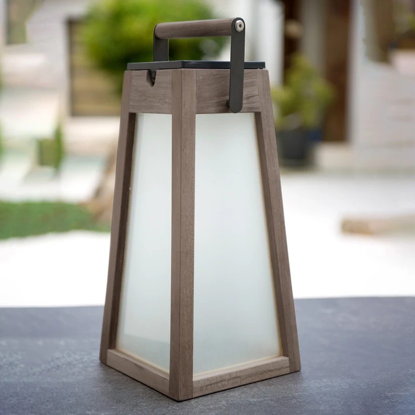Stylowo zaprojektowana latarnia solarna LED Tecka jest wykonana z najlepszego drewna tekowego i matowego akrylu. Dzięki powłoce Duratec zewnętrzna strona latarni przekonuje powierzchnią o wysokim połysku, ponieważ przetworzone drewno zachowuje kolor i światło w świetle słonecznym. Ponadto obudowa jest odporna na działanie substancji chemicznych i ma wysoką odporność na uderzenia. Latarnia posiada uchwyt, dzięki któremu można ją doskonale przenosić, a jej położenie można zmieniać w zależności od potrzeb.