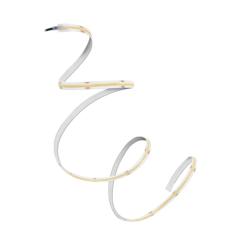 Taśma LED Flex COB, IP44, ciepła bielDzięki diodom LED COB taśma zapewnia ciągłą linię światła w łazienkach, strefach spa, a także na zewnątrz. Dzięki swojej elastyczności taśma LED może być idealnie dostosowana do warunków panujących w miejscu instalacji. Wyposażenie w przełącznik, kabel z zasilaczem wtykowym i materiał montażowy zapewnia nieskomplikowaną obsługę i instalację.