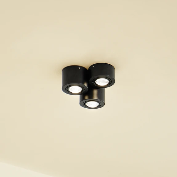3-punktowy downlight Jyla przekonuje nowoczesnym designem w eleganckiej czerni. Wykonany z połączenia żelaza, aluminium i tworzywa sztucznego, harmonijnie wpisuje się w nowoczesne koncepcje mieszkaniowe. Możliwość zewnętrznego sączenia jasności otwiera dodatkowe opcje indywidualnego dostosowania intensywności światła w celu stworzenia nastrojowej atmosfery.