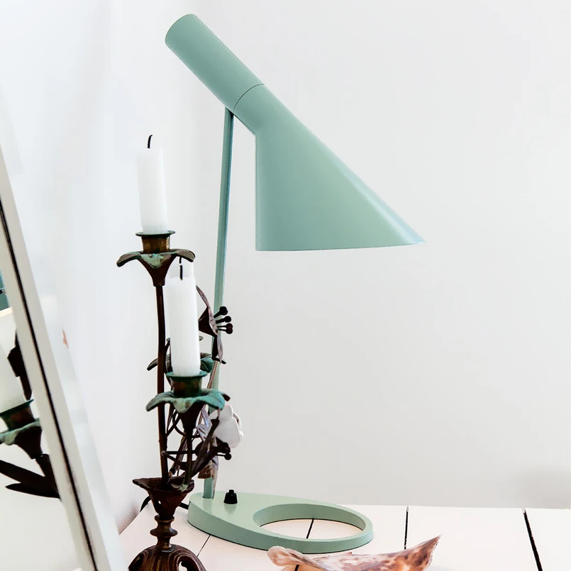 Louis Poulsen AJ–designerska lampa stołowa, petrol