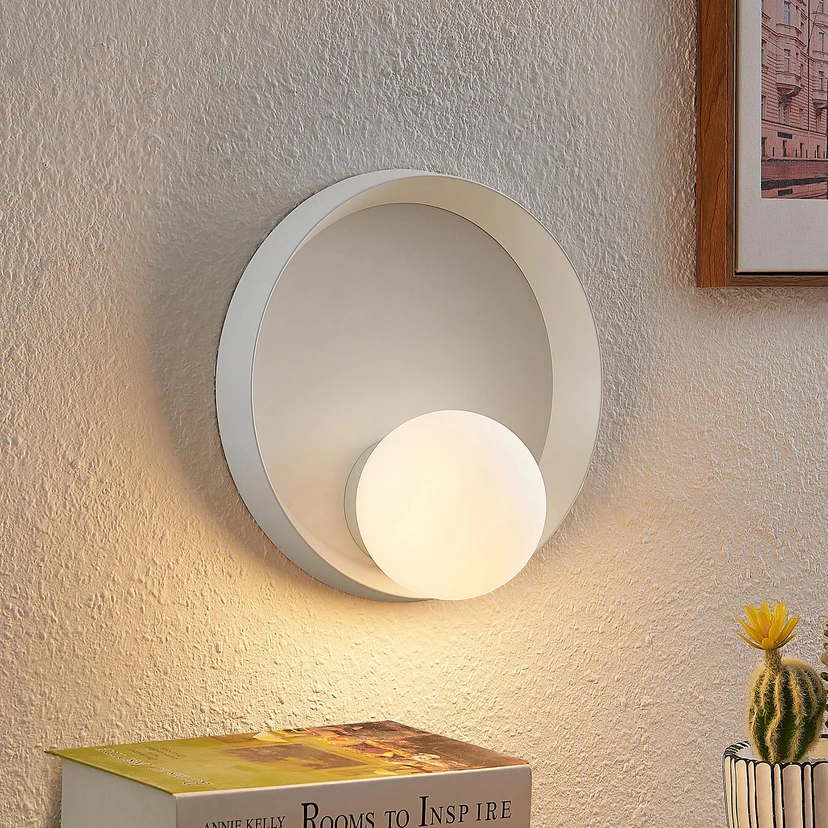 Przemyślany i elegancki design cechuje lampę ścienną Andelina, której podstawę stanowi płaska, biała płyta żelazna o okrągłym kształcie. Dodatkowo w dolnej części znajduje się kula ze szkła opalowego w kolorze białym, która dzięki powierzchni zaprojektowanej również w kolorze białym, daje mniej kontrastowy efekt niż w przypadku innych wariantów kolorystycznych, ale uosabia harmonię, która jest przez to jeszcze bardziej spójna. Wizualnie lampa ścienna Deisgn z kulą przypomina matematyczny obraz podzbioru i zawsze uzupełnia stylowo urządzone pomieszczenia mieszkalne o to coś. Znajdzie zastosowanie zarówno w przedpokoju, jak i w sypialni czy klasycznie w salonie. Szczególnie w nowoczesnych stylach wydaje się to szczególnie odpowiednie, a lampa G9 może być wybierana indywidualnie i może mieć współczesną, wydajną technologię LED.