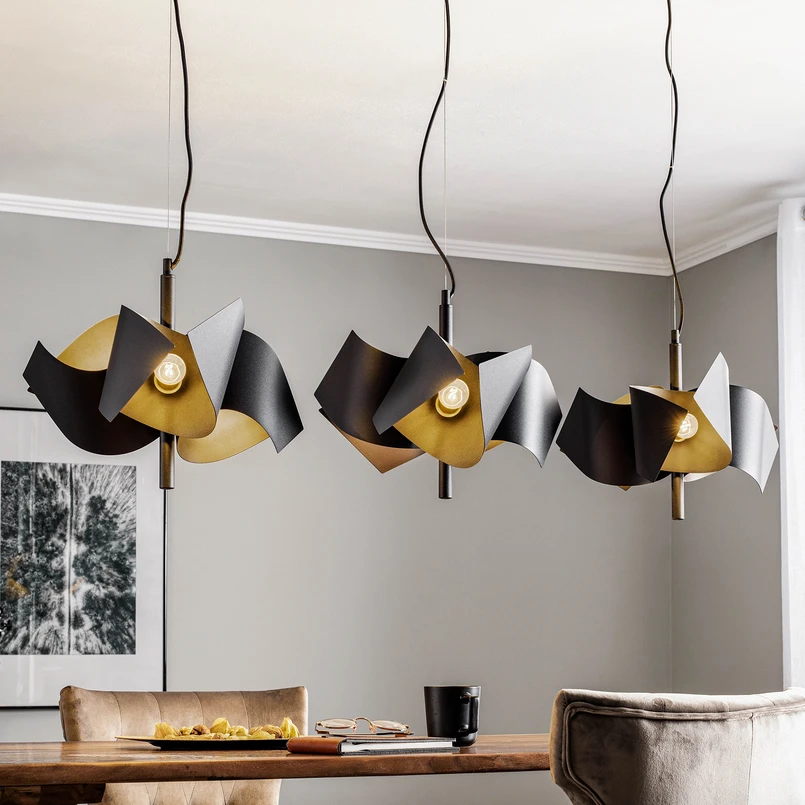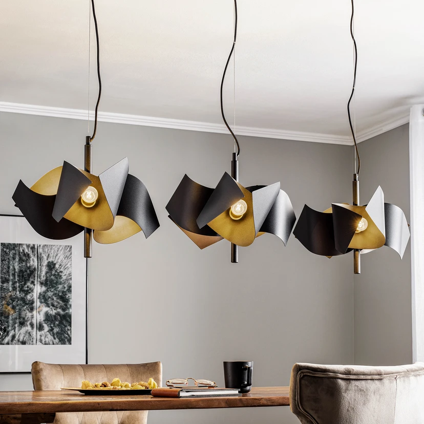 Efektowna lampa wisząca Imron z piaskowo-czarnej stali z trzema kloszamiImron wprowadza stylowe, designerskie aspekty do własnych czterech ścian. Lampa wisząca składa się z wydłużonego mocowania sufitowego, do którego przymocowane są trzy zawieszenia, z których każde dźwiga klosz. Klosze te mają zabawny design i mogą być wyposażone w odpowiednie źródła światła. Projekt Imron pochodzi z portfolio projektanta Ingo Thiele i służy jako zapadający w pamięć element dekoracyjny do salonu lub sypialni. Lampa wisząca Imron może być jednak również wykorzystana do oświetlenia stołu i w ten sposób zapewnić niezbędne światło podczas kolacji.