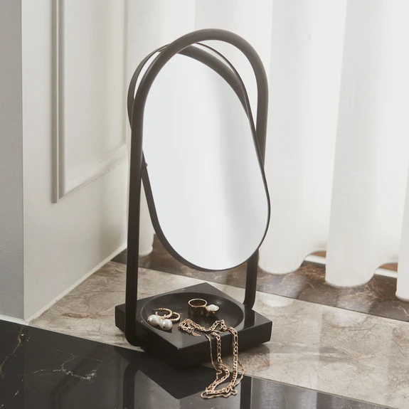 Lustro stołowe AYTM Angui, czarne, wysokość 35 cm, szkło, marmur