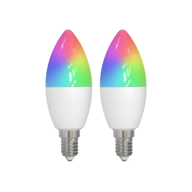 Inteligentnie sterowana żarówka LED E14 z funkcją RGBW w formie świecy sterowana przez ZigBee, Tuya i Philips Hue Kompaktowa żarówka LED ma podstawę E14 i może być zintegrowana z systemem ZigBee lub Tuya oraz sterowana za pomocą Philips Hue. Praktyczna funkcja RGB i CCT umożliwia elastyczną regulację barwy światła od ciepłej bieli (2700 K) do światła dziennego (6500 K) i generowanie światła w jasnych kolorach - Kąt wiązki 210° - Ściemniana - Dostarczana w praktycznym zestawie 2 źródeł światła może być również sterowana za pomocą aplikacji LUUMR APP. Jest ona dostępna zarówno dla systemu Android, jak i Apple i można ją łatwo pobrać ze strony https://play.google.com/store/apps/details?id=luumr.app&hl=en_US lub https://apps.apple.com/de/app/luumr/id6470302637