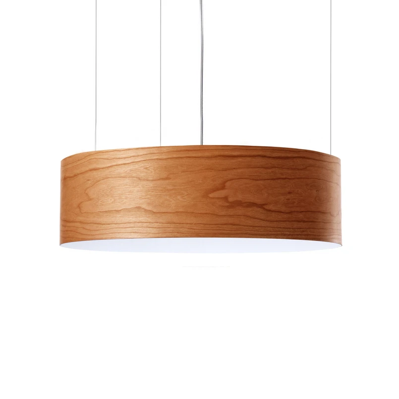 Ściemniana lampa wisząca LED Gea Slim z półprzezroczystą taśmą drewnianą