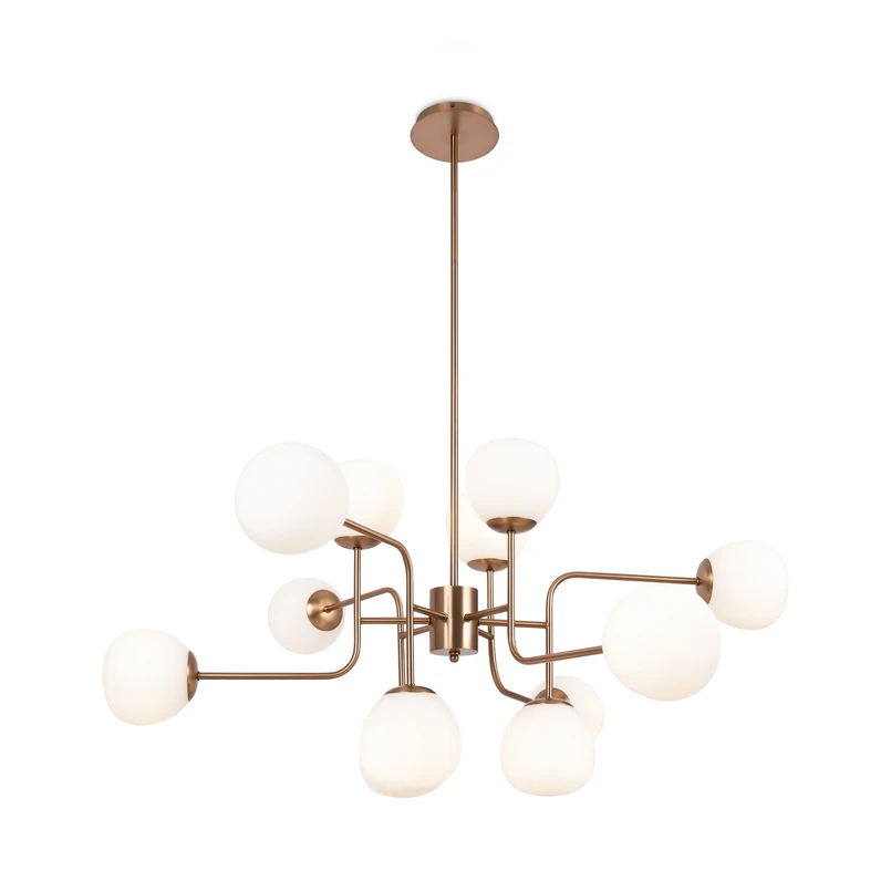 Maytoni lampa żyrandol Erich, mosiądz różowy, szkło/metal 12-punktowa.