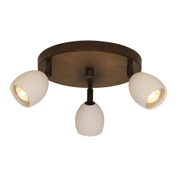 Na okrągłej płycie sufitowej reflektora Provence zamontowane są trzy pięknie wyprofilowane, matowo-białe klosze ceramiczne, które można regulować za pomocą złączy w różnych pozycjach, dzięki czemu za pomocą lampy można oświetlać w sposób skupiony różne obszary pomieszczenia lub korytarza. Połączenie brązowo-czarnego metalu i matowo-białej ceramiki sprawia, że lampa jest źródłem światła, które można idealnie wkomponować w styl wiejskiego domu. Do gniazdek GU10 można włożyć żarówki (ekskluzywne) o mocy do 12 W.
