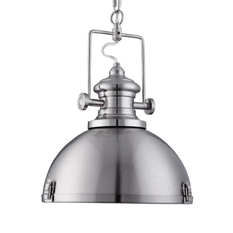 Modna industrialna lampa wisząca Silver z satynowanym, niklowanym wykończeniem