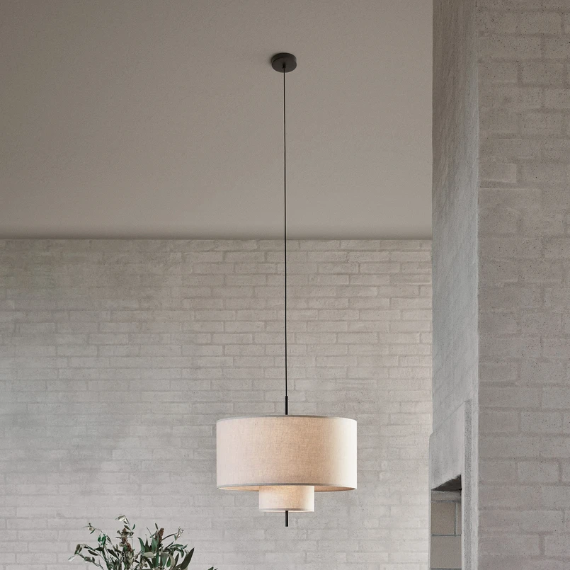 Tekstylna lampa wisząca Margin z dwuczęściowym kloszem Rodzina lamp Margin to nowoczesna interpretacja klasycznej lampy autorstwa projektanta Johna Asbury'ego. Nakładające się na siebie klosze Margin delikatnie rozpraszają światło i natychmiast nadają akcentom ciepła i wrażliwości. Miękkość tkaniny jest łagodzona przez wyraźną i graficzną sylwetkę, która nadaje pomieszczeniu pewną obecność i objętość. Poczucie proporcji i detale, takie jak liniowy element w oprawie, wyostrzają estetykę i pozwalają rozwinąć wyjątkowy charakter Margin.