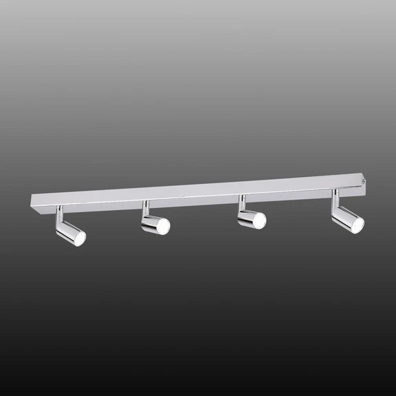 Lampa sufitowa LED Karen Leiste z odchylanymi reflektoramiLampa sufitowa LED Karen Leiste przekonuje nowoczesnym wzornictwem o wyglądzie polerowanego chromu i zapewnia ukierunkowane oświetlenie pomieszczenia, np. w korytarzu, salonie lub gabinecie. To wygodne źródło światła jest dostarczane z zasilaczem. Emituje ciepłobiałe światło LED (2850 K) i jest bardzo energooszczędne, a jego żywotność wynosi do 50 000 godzin. Z soczewką o kącie 45 stopni.