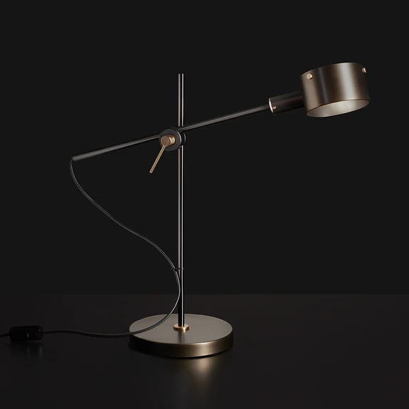 Lampa stołowa LED G.O. 252 marki Giuseppe Ostuni, z możliwością wielokrotnej regulacjiLampa stołowa G.O. 252 to nowa edycja modelu, który Giuseppe Ostuni zaprojektował już w latach 60. dla firmy Oluce. W swojej istocie projektowej jest nadal niezwykle aktualny, a dzięki wyraźnym liniom i dopracowanym detalom, a także wielu możliwościom regulacji stanowi dekoracyjne źródło światła do salonu lub również na biurko. G.O. to rodzina opraw, która zachowuje cechy stylistyczne oryginalnego produktu, takie jak cylindryczny klosz. Nowe wydanie zdobią wytworne detale w kolorze satynowanego złota, które kontrastują z czarnym prętem oraz kolorami podstawy i klosza.Ramię jest elementem przesuwnym dzięki systemowi przegubów i jest ustawiane i wyrównywane w zależności od potrzeb. Głowica lampy jest również regulowana, aby zawsze zapewnić idealne oświetlenie, czy to jako lampa do czytania w salonie, czy jako lampa robocza na biurku.