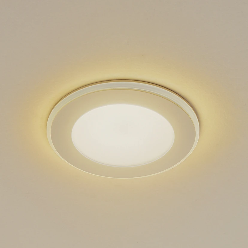 Oprawa wpuszczana LED Toka z białego tworzywa sztucznego z funkcją CCT i lampką nocną Oprawa wpuszczana LED Toka łączy w sobie nowoczesny design z innowacyjną regulacją barwy światła (CCT), która umożliwia dostosowanie barwy światła do pożądanej atmosfery za pomocą przełącznika ściennego. Jako zintegrowane na stałe źródło światła LED, Toka oferuje energooszczędne rozwiązanie oświetleniowe, które idealnie nadaje się do stosowania w jadalniach, salonach lub korytarzach. Prosta elegancja w kolorze białym doskonale komponuje się z każdym nowoczesnym wnętrzem i podkreśla stylowy charakter pomieszczenia. Wpuszczana oprawa LED może być połączona ze ściemniaczami fazowymi typu leading edge lub trailing edge, aby zapewnić elastyczne oświetlenie. Posiada również lampkę nocną, która zapewnia odpowiednie oświetlenie w godzinach wieczornych.