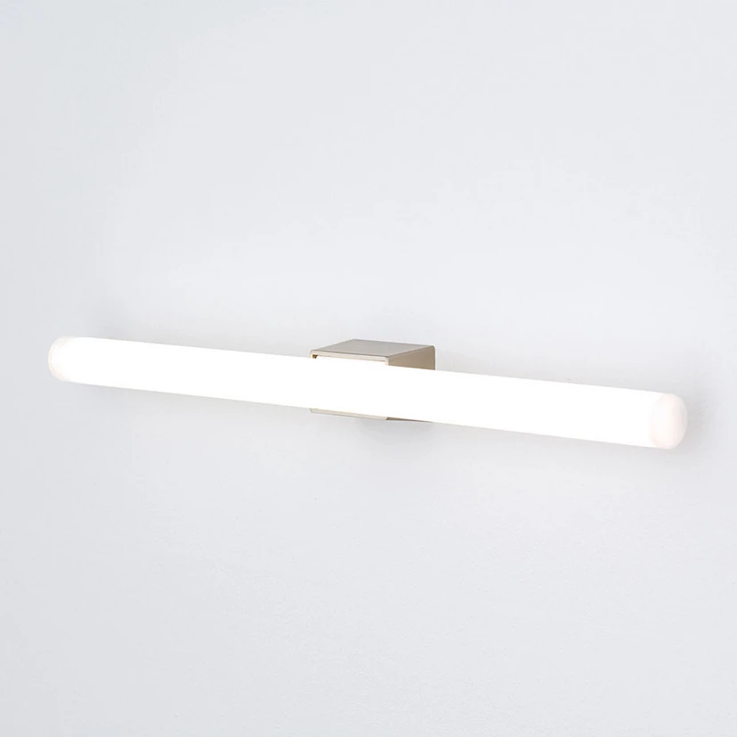 Zamontowana poziomo nad lustrem lub jako para z boku lustra - oprawa do lustra Visagist LED zapewnia optymalne warunki oświetleniowe przy lustrze łazienkowym. W metalowym uchwycie ściennym oprawy umieszczono lampę liniową LED S14d z opalowego białego tworzywa sztucznego, która świeci ciepłą białą barwą światła i może zostać wymieniona po upływie długiego okresu użytkowania.