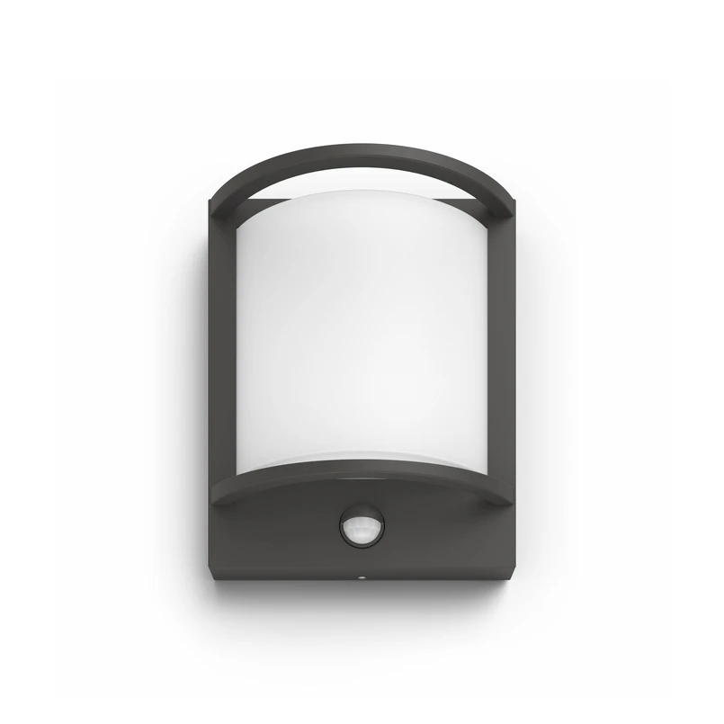 Zewnętrzna lampa ścienna LED Samondra z czujnikiem ruchuZewnętrzna lampa ścienna LED Samondra z kolekcji myGarden firmy Philips jest wykonana z wytrzymałego aluminium i dyfuzora z tworzywa sztucznego. Jest wyposażona w nowoczesną, ciepłobiałą technologię LED i dlatego stanowi trwałe oświetlenie każdej fasady. Zintegrowany czujnik ruchu włącza ją automatycznie.Dane czujnika ruchu:- Zakres wykrywania 110°- Zasięg czujnika maks. 10 metrów- Optymalna wysokość montażu 2 metry- Czas świecenia regulowany od 5 sekund do 12 minut