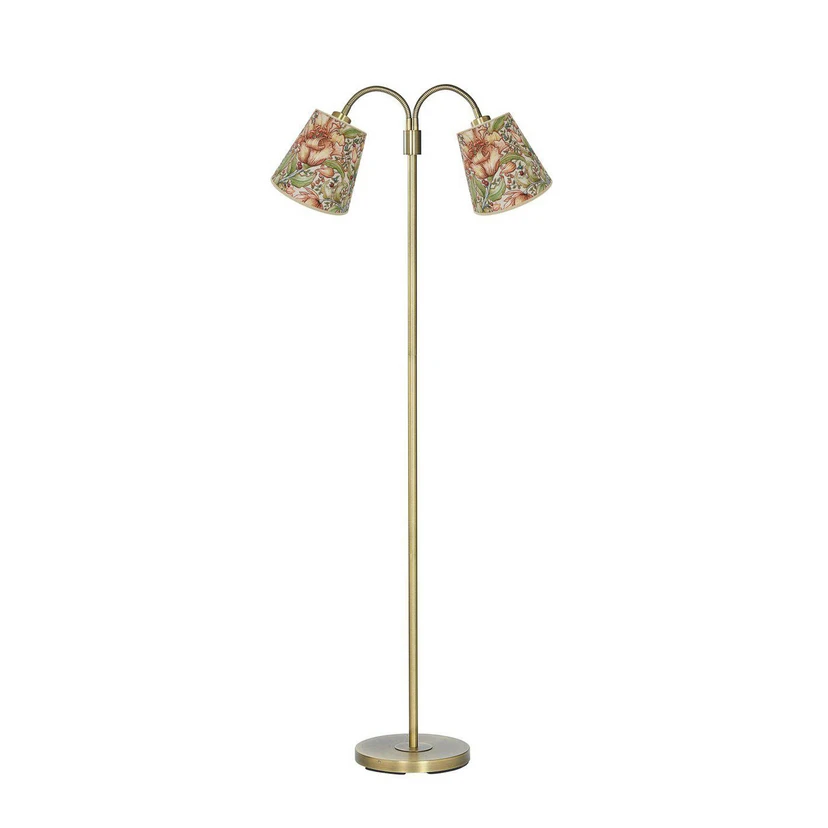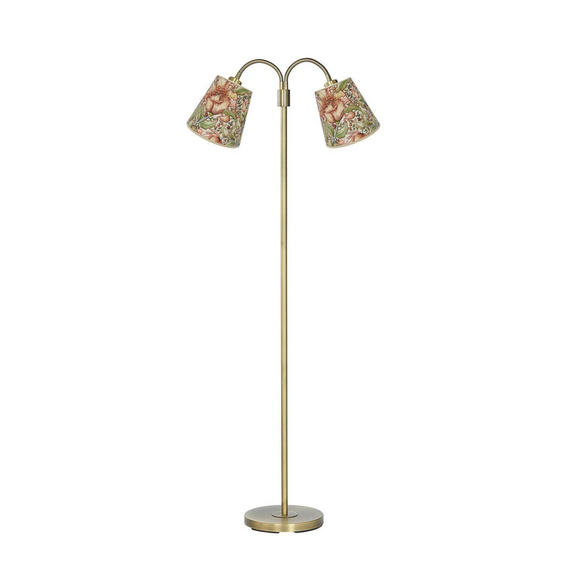 Lampa podłogowa PR Home Amy Cia Theo z metalową ramą w kolorze antycznego mosiądzu i dwoma kloszami z tkaniny Lampa podłogowa PR Home Amy Cia Theo łączy w sobie stylowe materiały i wyjątkowy design, który doda wyjątkowego charakteru każdemu pomieszczeniu. Dzięki dwóm kloszom z tkaniny Cia Theo z kolorowym motywem roślinnym i metalowej ramie Amy w kolorze antycznego mosiądzu, ta lampa stojąca jest HighLight dla różnych stylów wyposażenia. Czy to w salonie, sypialni czy jadalni, lampa podłogowa nadaje akcenty i tworzy zachęcającą atmosferę. Dzięki 2-punktowej konstrukcji, Amy Cia Theo oferuje optymalny rozsył światła, który jest odpowiedni zarówno na przytulne wieczory, jak i inspirujące chwile. Wysokiej jakości wykonanie i wyrafinowany design sprawiają, że jest to trwały i funkcjonalny element wystroju wnętrza. Ta lampa podłogowa to coś więcej niż tylko źródło światła - to deklaracja stylu i indywidualności.