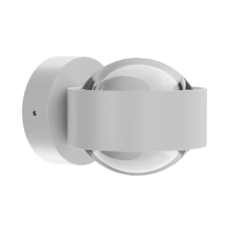 Minimalistyczny kinkiet Puk Mini Wall z dwoma przezroczystymi kloszami Kinkiet Puk Mini Wall od Top Light to dobrze znany klasyk, który wie, jak zdobyć punkty pomimo prostego designu. Wysokiej jakości metalowy korpus ma okrągły kształt i jest wyposażony w przezroczystą szklaną soczewkę na górze i na dole. Typową cechą tych soczewek jest ostro zarysowany stożek światła, który pojawia się na ścianie. Tworzy to światło skierowane w górę i w dół, tworząc przyjemną atmosferę i zapewniając dobre oświetlenie pomieszczenia bez oślepiania. Dzięki zaakcentowanemu i ukierunkowanemu oświetleniu, uwaga widza kierowana jest na wybrany obszar, co pozwala na realizację indywidualnej koncepcji pomieszczenia. Aby nadać oświetleniu kolorowy akcent, istnieje możliwość zakupu różnych filtrów barwnych, które wystarczy umieścić pod soczewkami.
