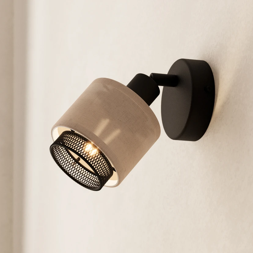 Reflektor ścienny Rosley, czarny/naturalny, len