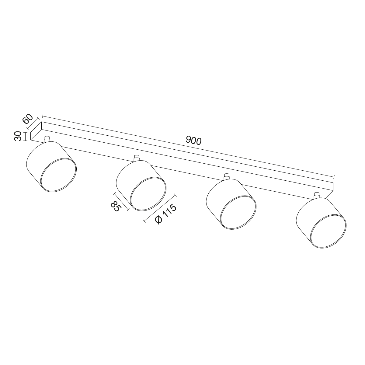4-punktowa reflektor sufitowy Chloe z regulowanymi reflektorami, oprawa GU10