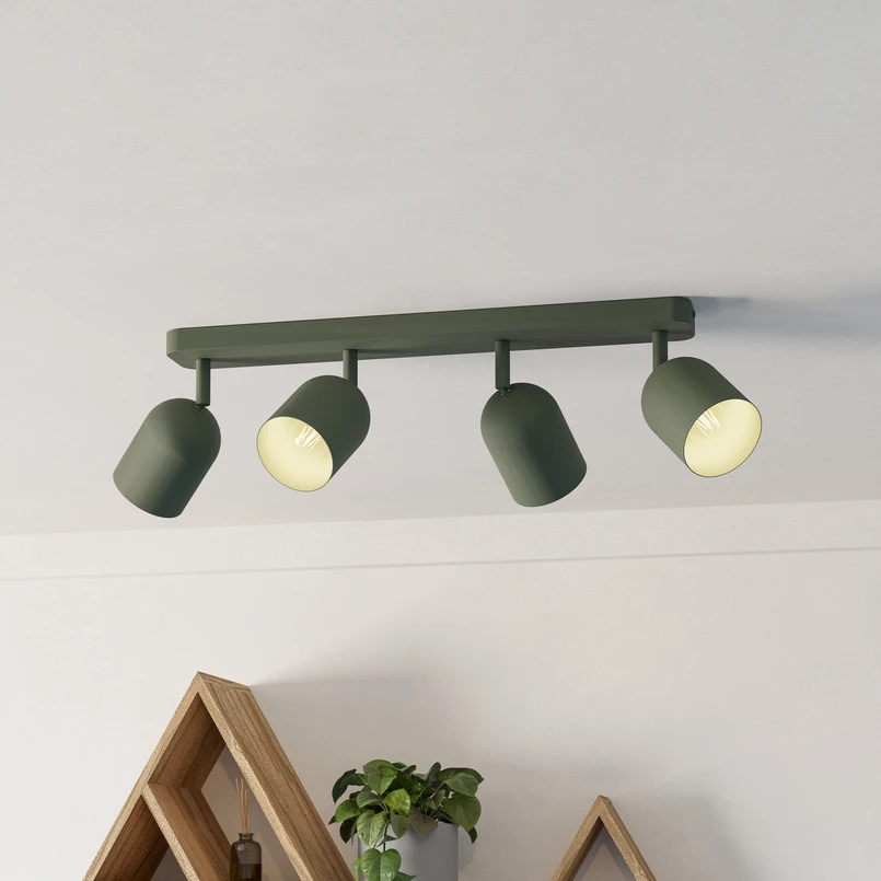 Reflektor sufitowy Tilston, ciemnozielony, długość 58 cm, 4-punktowa, stal