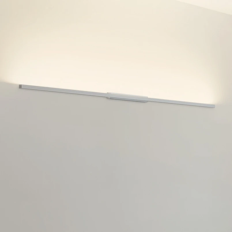 Spina LED - ściemniany, chromowany kinkiet LED, ciepła biel 3000 K, 90 cm Błyszczący, chromowany kinkiet LED Spina nadaje się do montażu na ścianie lub suficie i jest wyposażony w opatentowany system wtykowy do prostej instalacji oprawy. Obudowa oprawy wykonana jest z wytłaczanego aluminium z polerowanym chromowanym wykończeniem. Diody LED zainstalowane wewnątrz oprawy są przykryte opalowym dyfuzorem wykonanym z wysokiej jakości szkła syntetycznego, przez który emitują światło równomiernie i bez efektu olśnienia. Diody LED mogą być ściemniane (DALI). Indeks oddawania barw zainstalowanych diod LED wynosi bardzo dobre 85 Ra. Za zastosowaniem tego wysokiej jakości kinkietu LED Spina przemawia nie tylko ogromna oszczędność energii w porównaniu z konwencjonalnym oświetleniem, ale także bardzo długa żywotność sięgająca 50 000 godzin. Można go zintegrować z niemal każdym schematem kolorystycznym i wieloma stylami wyposażenia, a także idealnie nadaje się do użytku w obszarach komercyjnych.