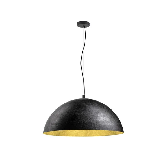 Żyrandol Forchini łączy w sobie nowoczesny design z materiałem, jakim jest tworzywo sztuczne wzmocnione włóknem szklanym. Stylowe połączenie czarnej powierzchni klosza i złotej strony wewnętrznej nadaje każdemu pomieszczeniu elegancki charakter, a ponadto zapewnia niepowtarzalny nastrój oświetlenia. Ta lampa wisząca idealnie nadaje się do salonu, jadalni i kuchni, gdzie przekonuje swoim estetycznym wyglądem.