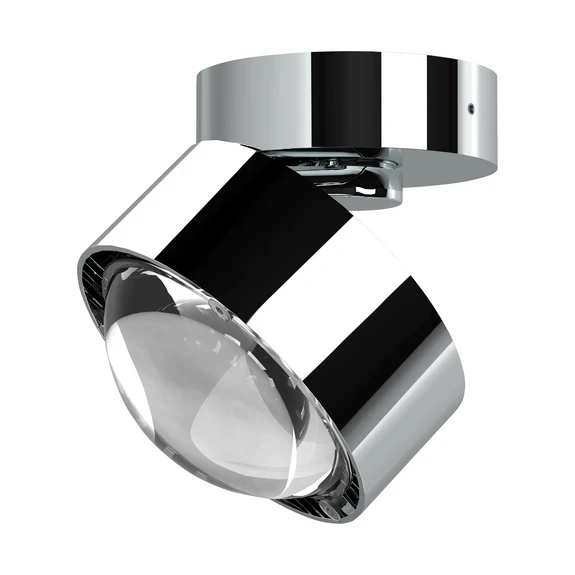 Prosta lampa sufitowa Puk Mini Move, obracana w zakresie 360° Reflektor Puk Mini Move to obracany i odchylany element oświetleniowy, który można wykorzystać do oświetlenia określonych obszarów. Zastosowana przezroczysta szklana soczewka emituje stożek światła o ostrych krawędziach. Okrągły, prosty design lampy sufitowej sprawia, że ma ona uniwersalne zastosowanie i oferuje ponadczasową elegancję w wielu pomieszczeniach prywatnych i publicznych. Akcenty kolorystyczne można tworzyć za pomocą opcjonalnie dostępnych filtrów kolorystycznych. Są one umieszczane pod soczewką i tworzą kolorowe światło w zależności od wyboru.
