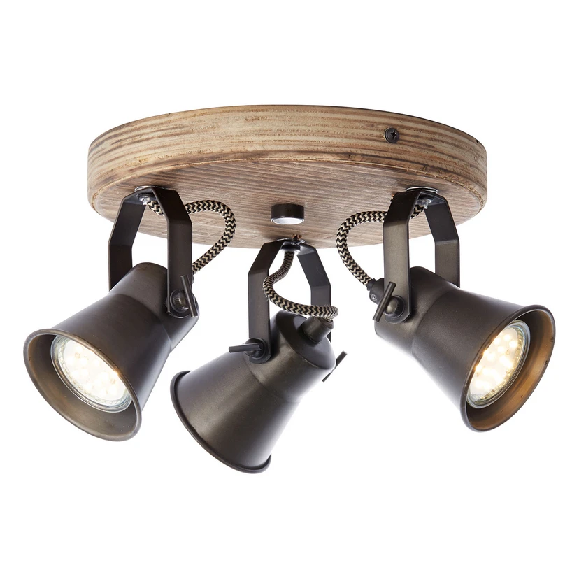 Dzięki trzem obrotowym sporom, lampa sufitowa Spots imponująco podkreśla wygląd każdego mieszkania i może wpływać na atmosferę w wybrany sposób. Mieszanka materiału ze stali i drewna pokazuje swoją rustykalna stronę.