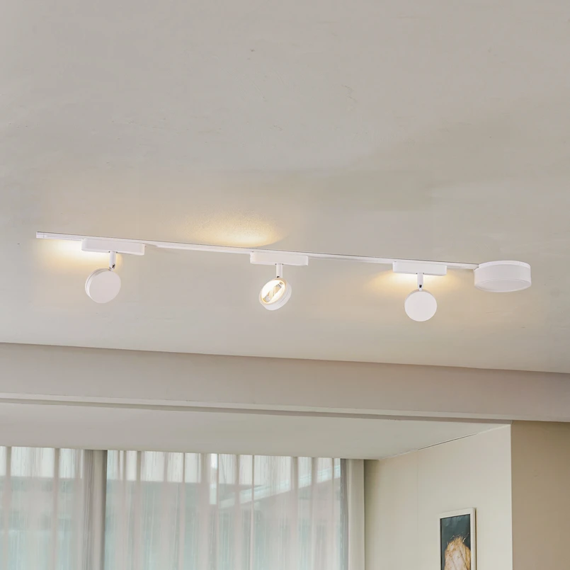 Biały 1-fazowy system szynowy Lumaro z spotami LED i pilotem