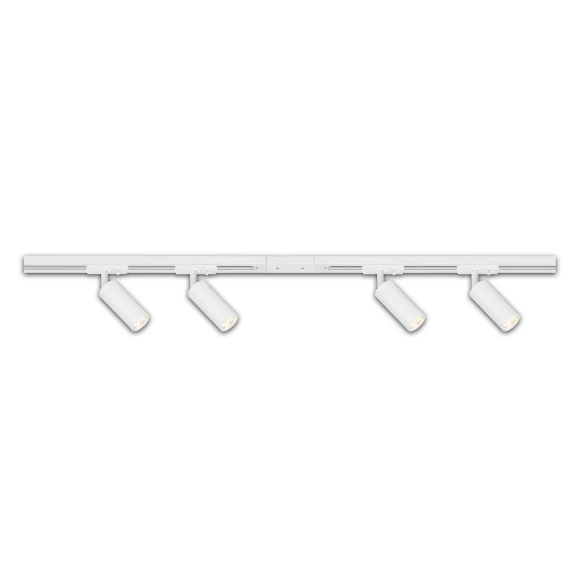 System szynowy LED z 4-punktowymi spotami Zestaw systemu szynowego 230V składa się z: - 4 spotów z modułami LED - 2 szyn - 2 zaślepek - 1 zasilacza - 2 łączników prostych