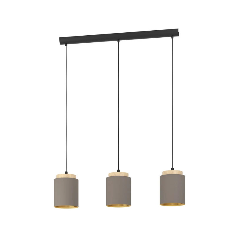 Tekstylna lampa wisząca Albariza, kolor cappuccino, tkanina, 3-punktowa.
