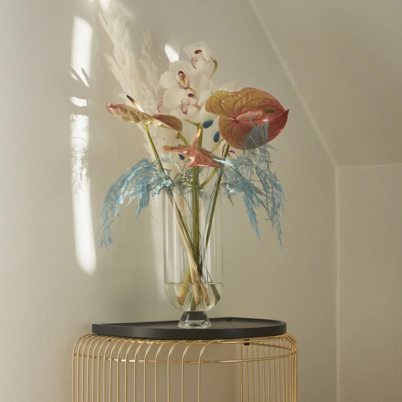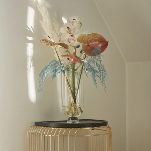 Wazon Glacies z ręcznie dmuchanego szkła Wyobraź sobie uroczystą sylwetkę góry lodowej przełamującej powierzchnię oceanu, dramatycznie ukazującą swoje tajemnicze i spokojne piękno. Jak sama nazwa wskazuje, jest to inspiracja dla wazonu Glacies, elementu projektu wykonanego z dmuchanego szkła. Unikalny kształt wazonu sprawia, że jest to uwodzicielski element w kolekcji wnętrz, który wygląda wdzięcznie z kwiatami lub bez nich. Informacje o produkcie: Wykonany z dmuchanego szkła - każdy wazon jest wyjątkowy. W związku z tym możliwe są różnice kolorystyczne, różnice w grubości materiału i odchylenia od zdjęcia produktu. Wskazówki dotyczące pielęgnacji: Aby usunąć brud i kurz, przetrzyj ściereczką z mikrofibry zamoczoną w mieszaninie łagodnego detergentu i ciepłej wody. Nie używaj szorstkiej ściereczki. Ten produkt nie nadaje się do mycia w zmywarce.