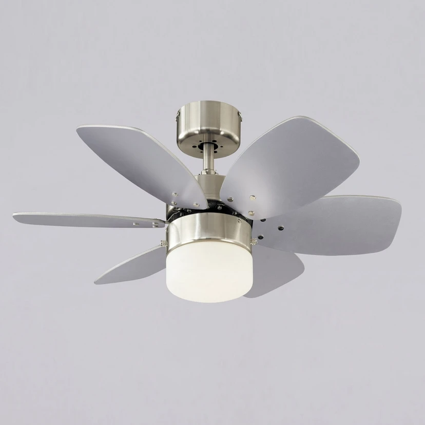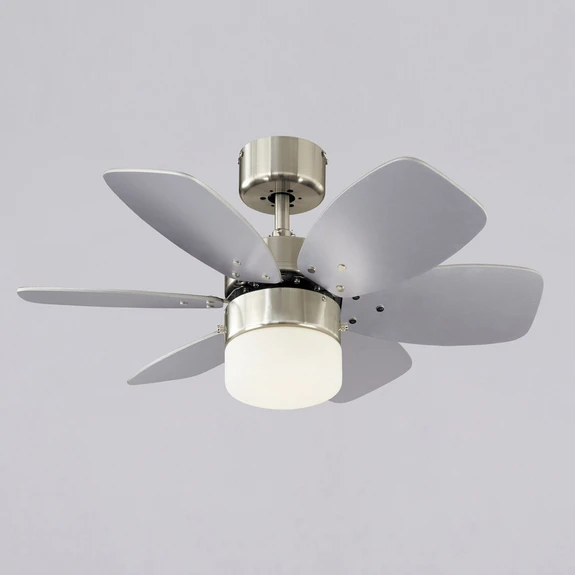 Wyposażony do użytku całorocznego, tzn. wyposażony w funkcje letnie i zimowe. Latem powietrze w pomieszczeniu jest odświeżone, a zimą wentylator sufitowy Floral Royal zapewnia przyjemne warunki temperaturowe i mile widziane obniżenie kosztów energii poprzez rozprowadzenie ogrzanego powietrza.