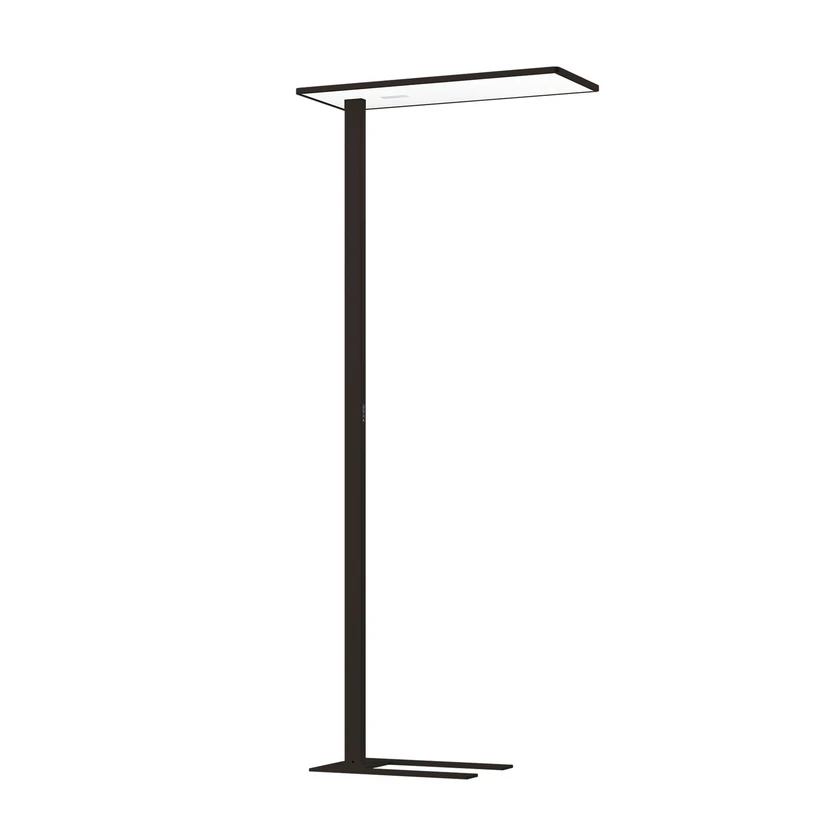 Zadaniowa lampa stojąca LED z asymetrycznym rozsyłem światła, bezpośrednim/pośrednim rozsyłem światła i czujnikiem obecności i jasności, 4000 K Przeznaczona do użytku jako światło zadaniowe odpowiednie do ekranów zgodnie z normą DIN EN 12464-1, oprawa stojąca LED Task jest idealnym oświetleniem biurowym. Solidna podstawa ma wgłębienie, które umożliwia umieszczenie jej blisko stanowiska pracy. Prostokątna głowica lampy ma zaokrąglone krawędzie i wyjątkowo płaską konstrukcję, co nadaje oprawie nowoczesny i elegancki wygląd. Dzięki korpusowi LGP (Prism) światło z lampy stojącej biurowej LED Task jest kierowane bezpośrednio w dół oraz asymetrycznie i pośrednio w górę przez nachylone płyty. Mikropryzmatyczna osłona z PMMA zapewnia również absolutnie jednorodne oświetlenie, a zintegrowany czujnik podczerwieni (czujnik obecności i jasności) gwarantuje, że światło jest włączane, gdy ludzie są obecni i wyłącza się, gdy nie ma aktywności. Możliwość indywidualnego ustawienia wartości jasności - Kabel połączeniowy (3 m) z wtyczką z uziemieniem - Strumień świetlny powyżej 65° ≤ 3000 cd/m² - Binning początkowy ≤ 3 MacAdam - Bezpieczeństwo fotobiologiczne zgodnie z normą IEC 62471 Grupa ryzyka RG 0 - brak ryzyka - Zasięg detekcji czujnika ø 4,5 m na podłodze