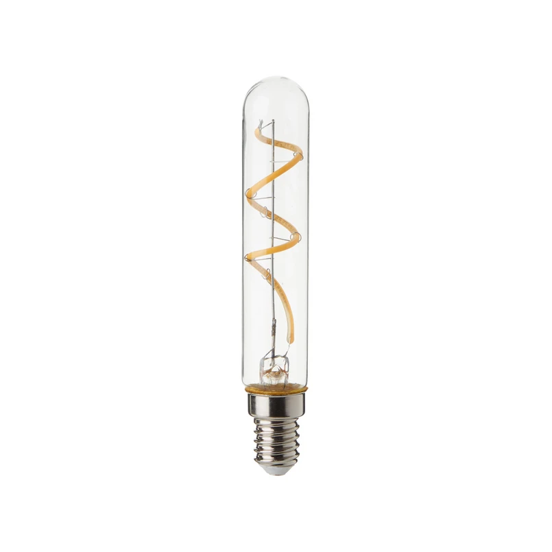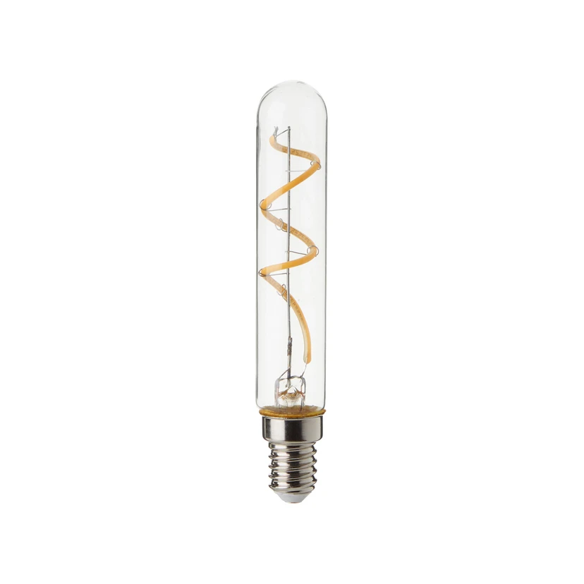 Żarówka rurkowa LED E14, 3,7 W, barwa światła ciepła biel Ta żarówka rurkowa LED urzeka widocznymi przez przezroczyste szkło żarnikami, które zapewniają nastrojowe światło o barwie ciepłej bieli - piękna forma rurki z widocznymi żarnikami - barwa światła ciepła biel (3000 kelwinów)